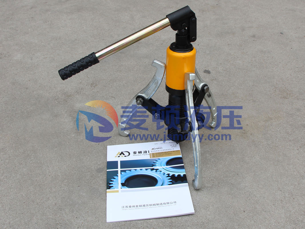 液壓拉馬是以液壓起動桿直接前進移動,故推動桿本身不作轉動。鉤爪座又可隨螺紋直接作前進后退之調距,操作時只要把手前后小幅度擺動,油壓起動桿前移,鉤爪相對應后退,把被拉物體拉出。